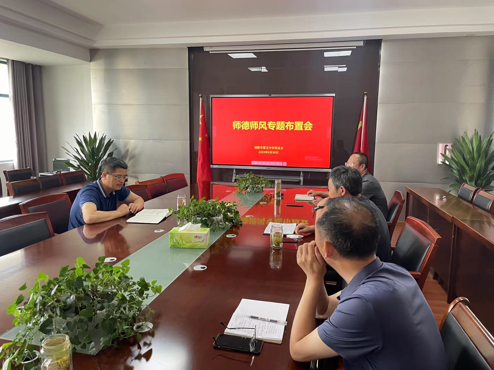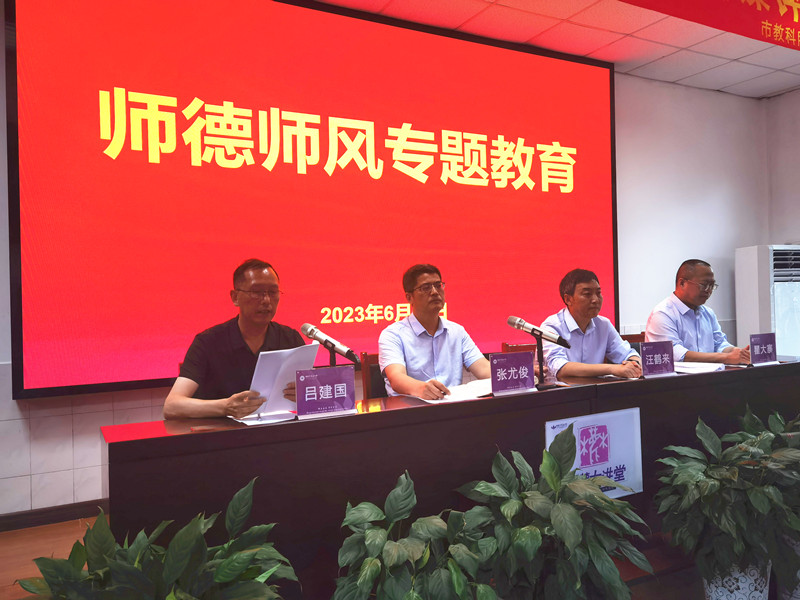 為了進(jìn)一步加強(qiáng)師德師風(fēng)建設(shè),促進(jìn)教師廉潔自律,6月30日上午,市五中召開師德師風(fēng)專題布置會,會議由校黨總支書記、校長張尤俊主持,校黨總支委員汪鶴來、呂建國、瞿大寨參加會議。