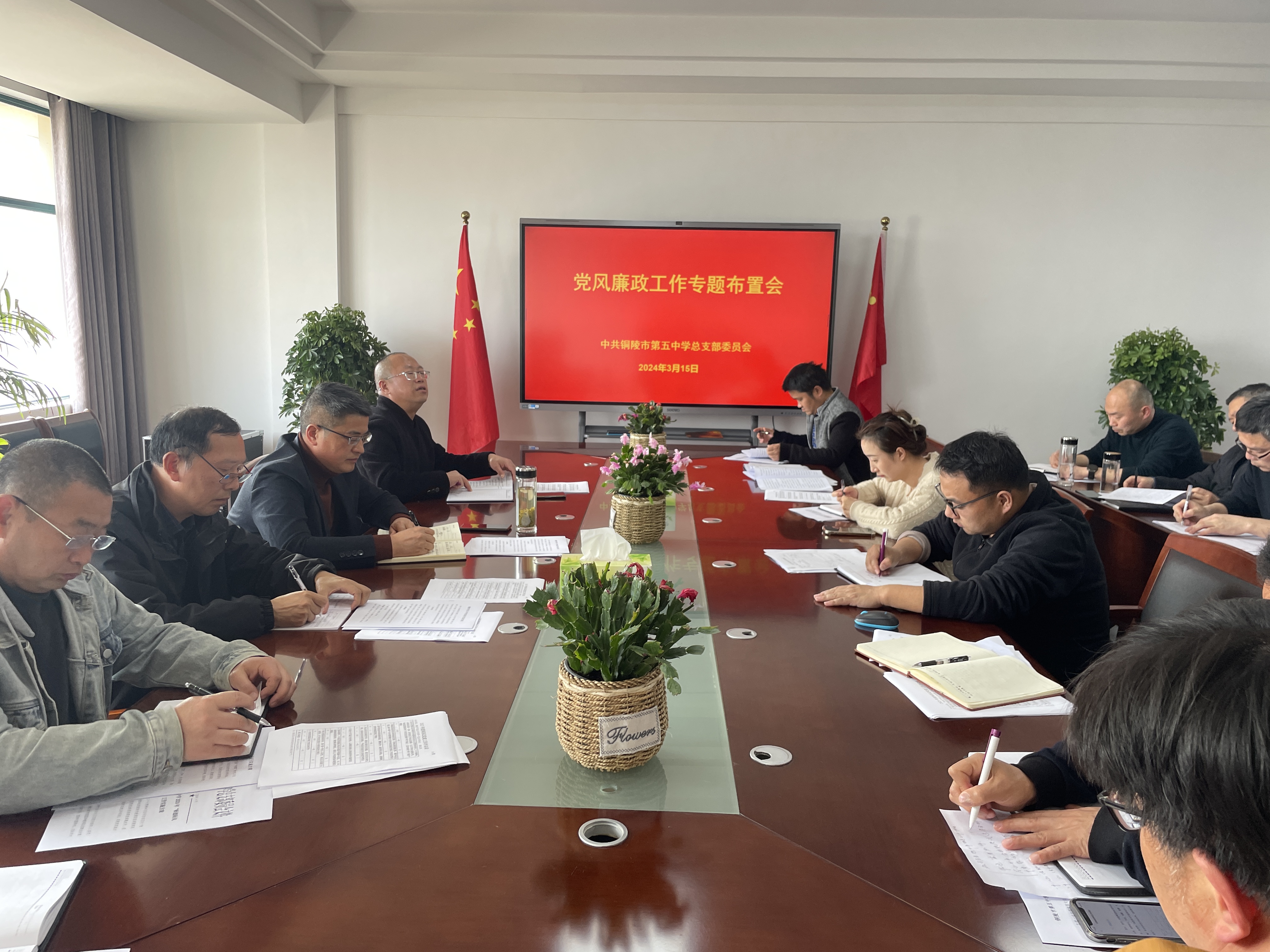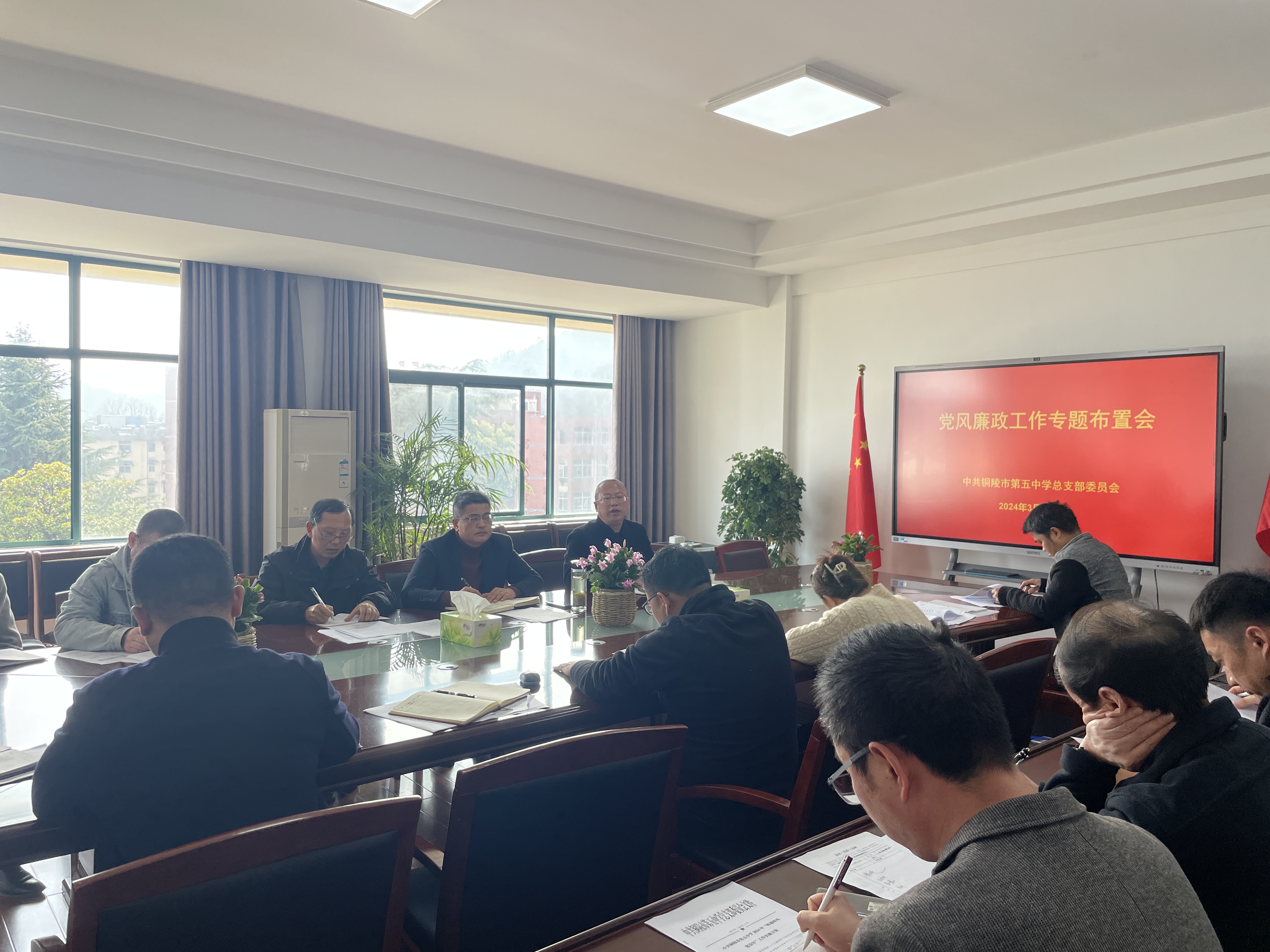 為進(jìn)一步加強(qiáng)黨風(fēng)廉政建設(shè),壓實(shí)全面從嚴(yán)治黨主體責(zé)任,筑牢廉潔根基,3月15日下午,市五中在綜合樓四樓會(huì)議室召開(kāi)黨風(fēng)廉政專題研究會(huì),校黨總支班子成員、各職能科室負(fù)責(zé)人參加會(huì)議,會(huì)議由校黨總支書記、校長(zhǎng)張尤俊主持。