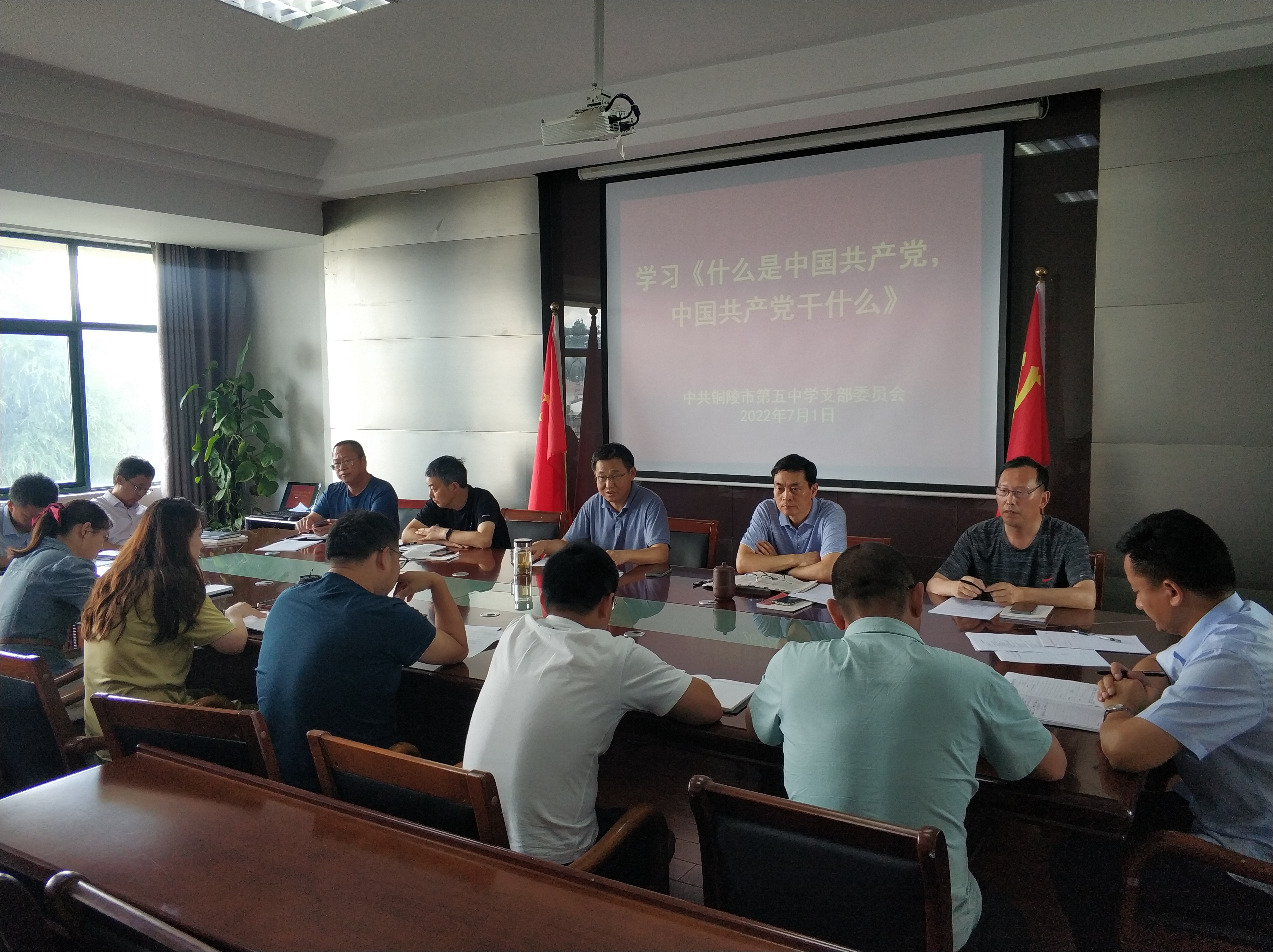 7月1日,為慶祝中國共產(chǎn)黨成立101周年,喜迎黨的二十大勝利召開,大力弘揚偉大建黨精神,市五中黨支部開展政治學(xué)習(xí)活動。