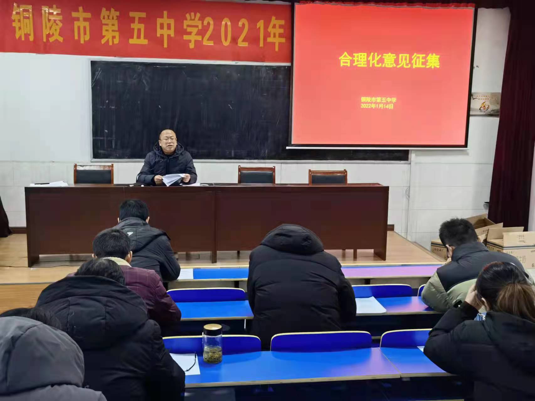 1月14日市五中分年級(jí)部召開教職工會(huì),組織開展以“積極建言,共繪藍(lán)圖”為主題的合理化建議征集活動(dòng)。