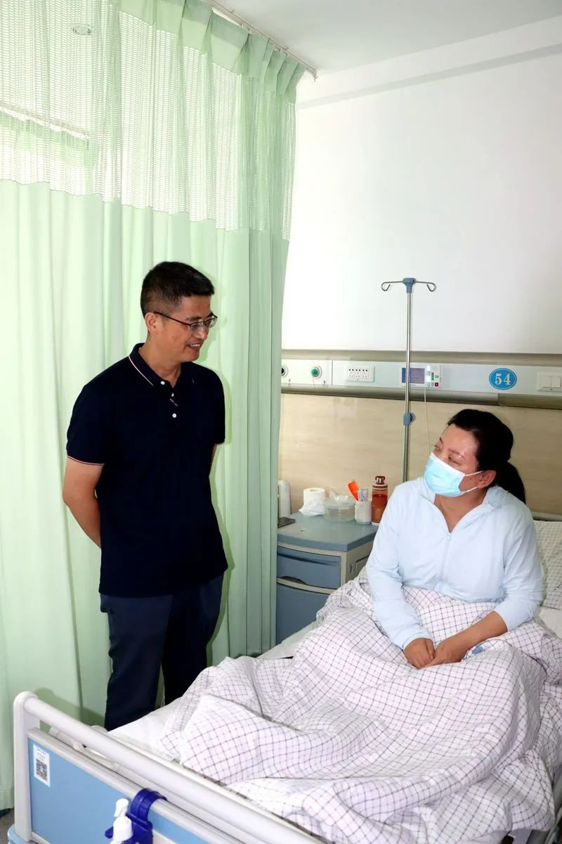 最后,一行人趕往市人民醫(yī)院去看望王捷頻老師。因?yàn)橐咔橛绊�,探望時(shí)間非常有限。張尤俊了解了王老師的病情后,讓王老師好好配合醫(yī)生治療,不用擔(dān)心課的問題,養(yǎng)好身體是最重要的。王老師也對來自學(xué)校的關(guān)懷表示感謝。
