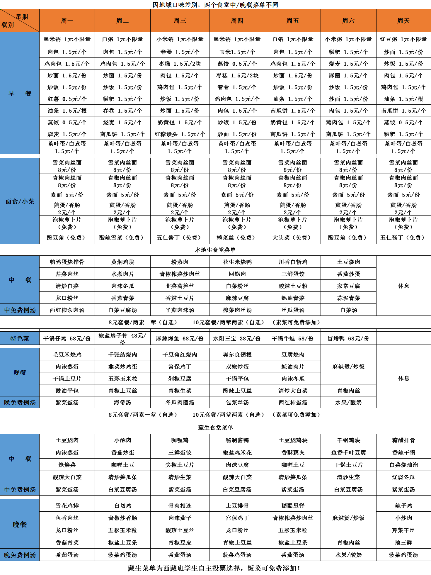 每周安排