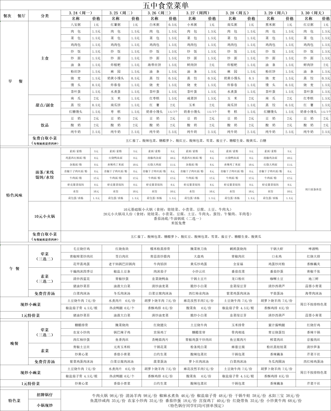 2025年3月24號-3月30日食譜