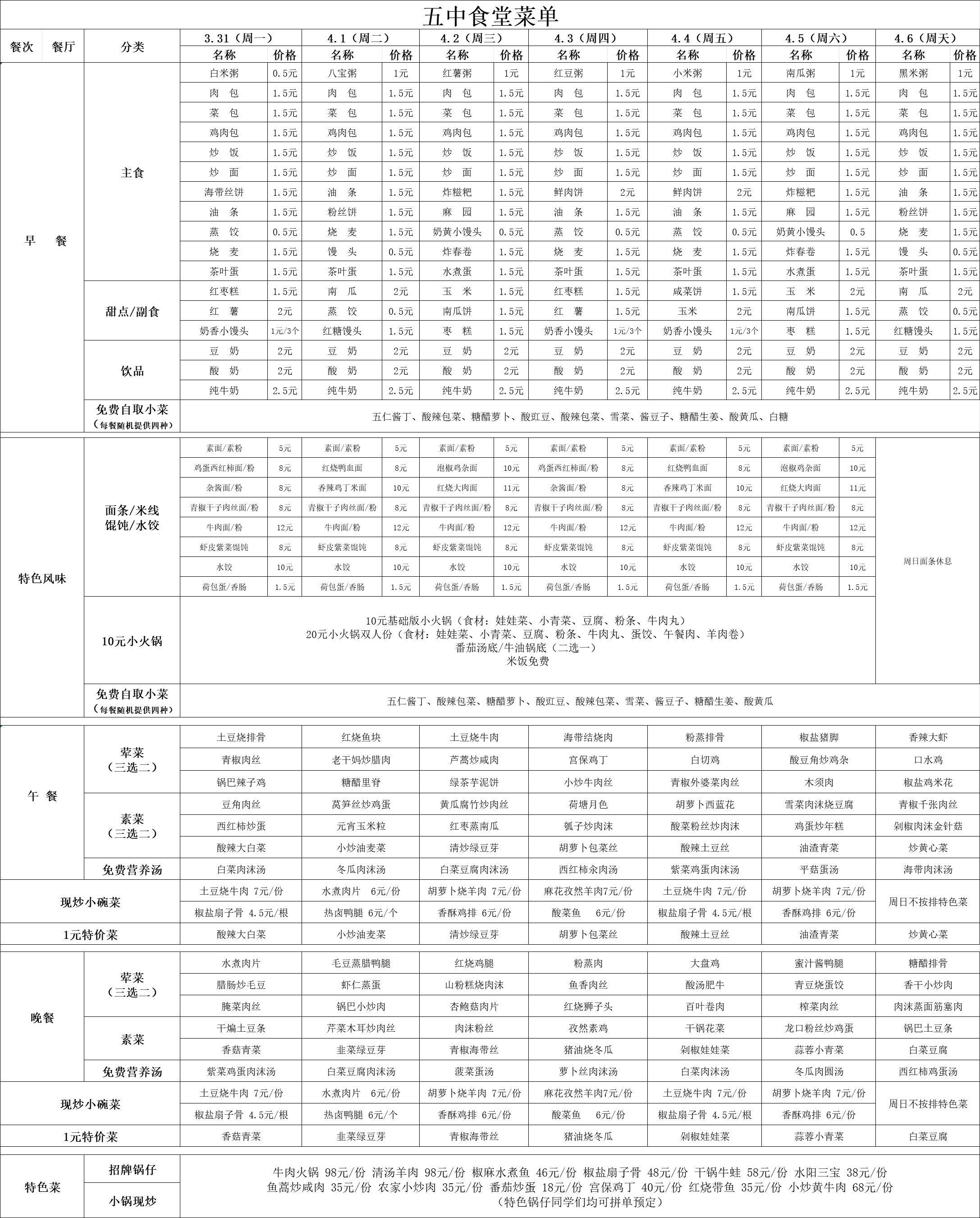 2025年3月31號(hào)-4月6日食譜