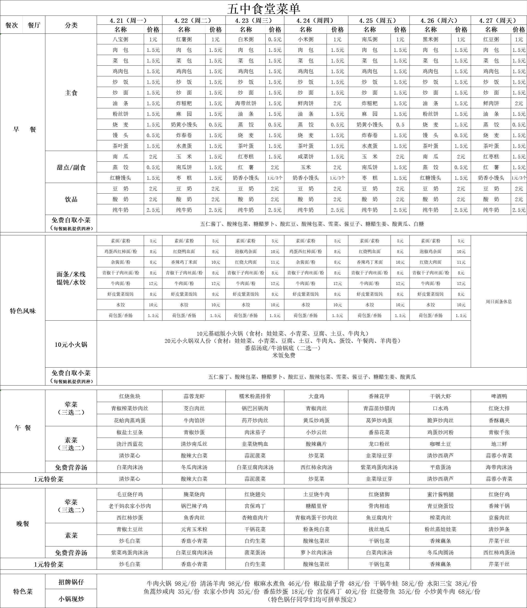 2025年4月21號(hào)-4月27日食譜