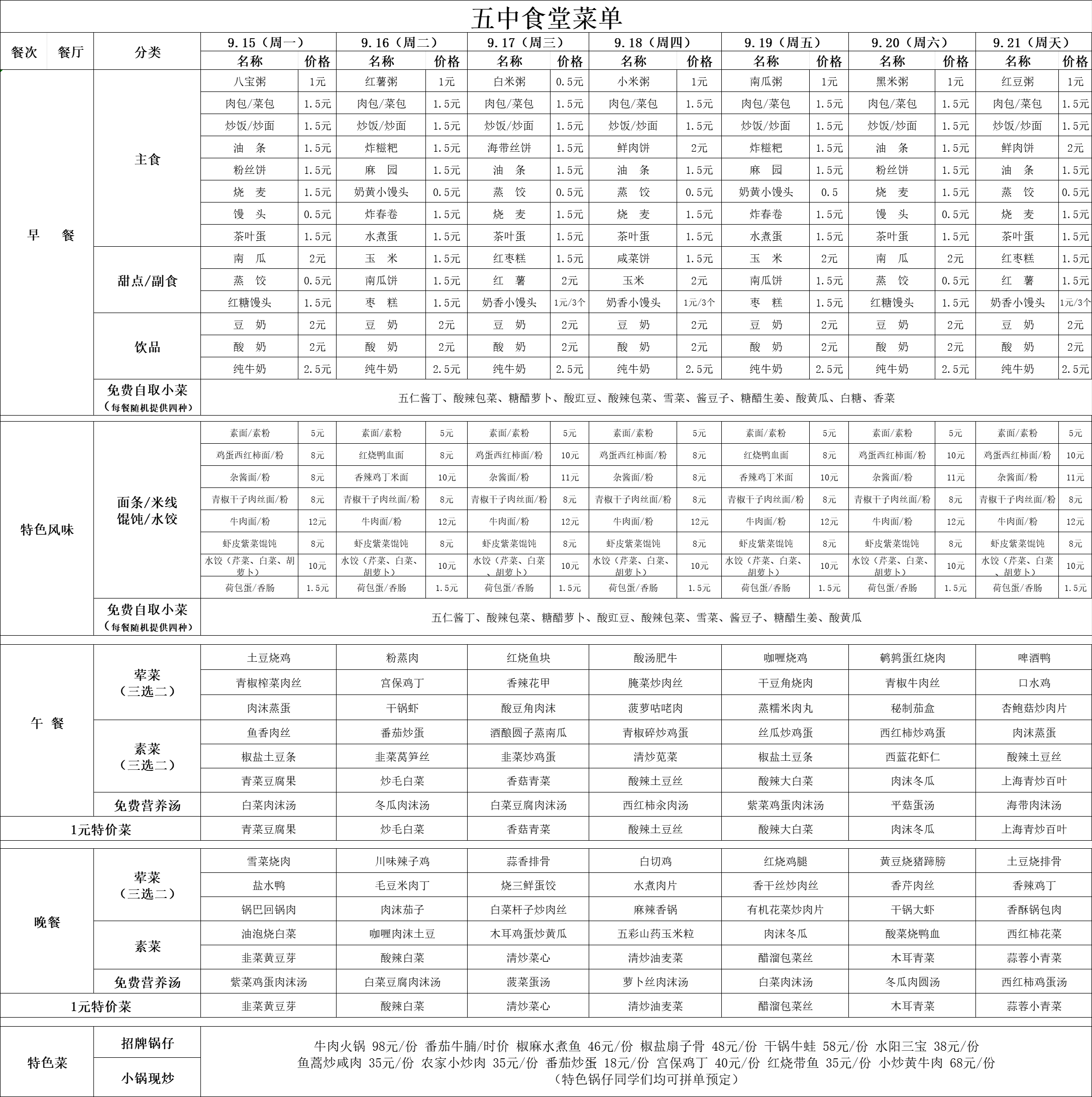 2025年9月15號(hào)-9月21日食譜
