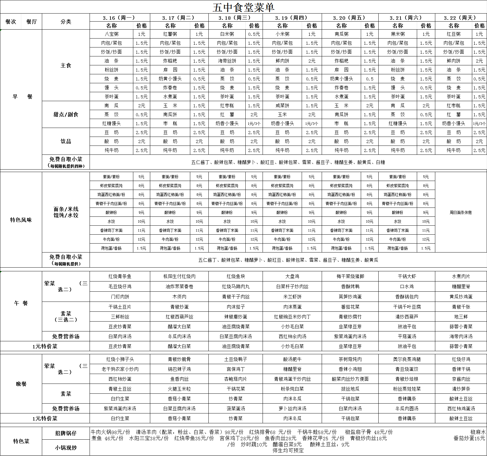 2026年3月16號-3月22日菜譜