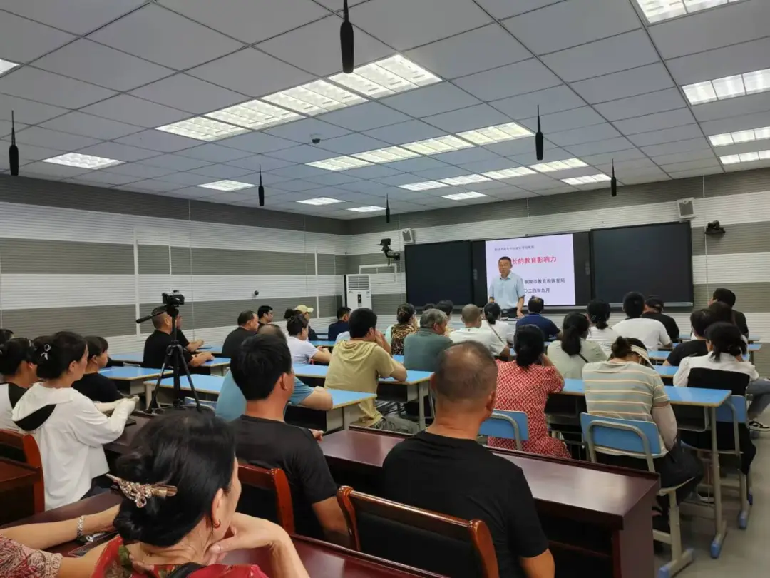 遇見是信任開始的相知,教育是家校溝通理念共建的過程。教育也是一場(chǎng)美麗的邂逅,不光見證著孩子的成長(zhǎng),也寄托了家長(zhǎng)的期望。為了促進(jìn)學(xué)校與家庭之間的緊密合作,加強(qiáng)家校間的雙向交流,集合家校的力量,共同推動(dòng)學(xué)生的全面成長(zhǎng),9月12日下午,我校在科技館四樓錄播室開展了家長(zhǎng)學(xué)校培訓(xùn)活動(dòng)。邀請(qǐng)銅陵市青少年心理健康教育顧問、心理健康專家指導(dǎo)委員會(huì)主任沐揚(yáng)到會(huì)指導(dǎo),并開展“家長(zhǎng)的教育影響力”專題演講。初三年級(jí)全體家長(zhǎng)參加。