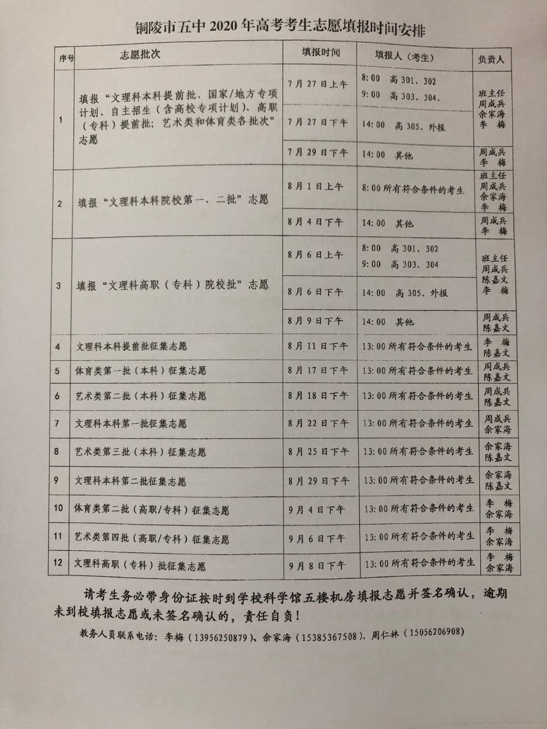 我校2020年高考志愿填報(bào)(含征集)時(shí)間安排