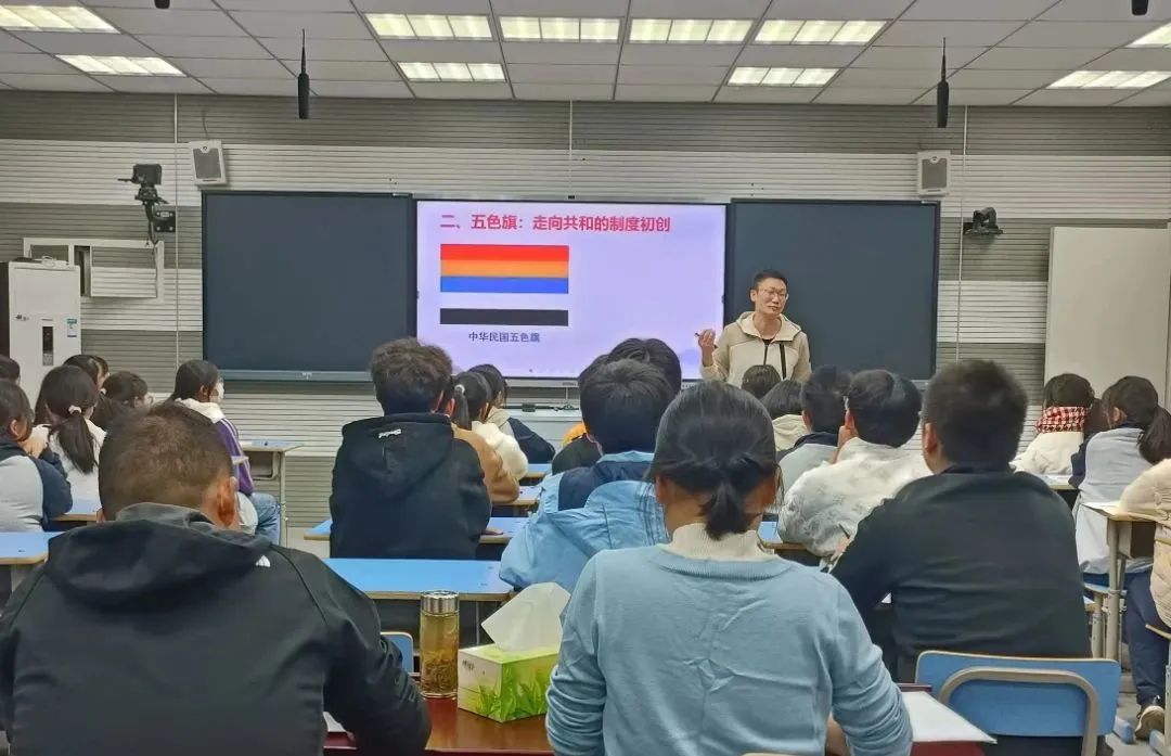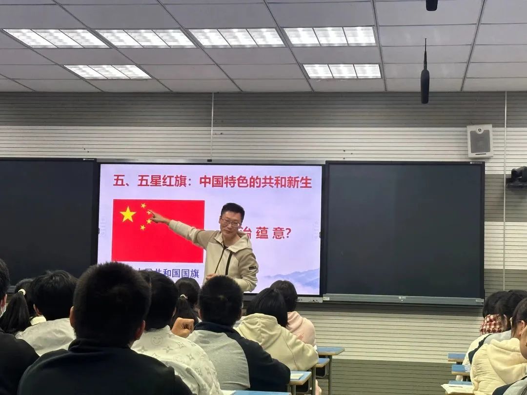 柯志強老師的授課課題是“中國近代至當(dāng)代政治制度的演變”�?吕蠋熞�“國旗”為線索對教材內(nèi)容進行大膽裁剪,創(chuàng)設(shè)情境分析大清龍旗、五色旗、青天白日滿地紅旗及五星紅旗等背后的政治蘊意,并通過橫向與縱向?qū)Ρ龋龑?dǎo)學(xué)生了解共和制在中國建立的曲折歷程,理解中國政治道路發(fā)展的獨特性,從而進一步堅定社會主義制度自信和道路自信。