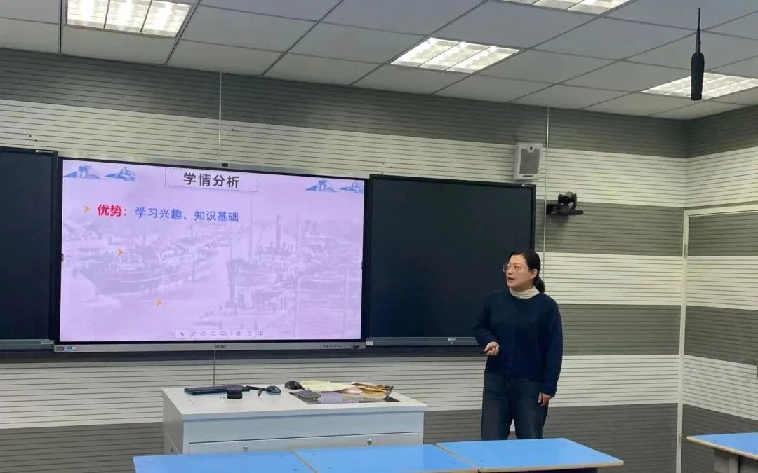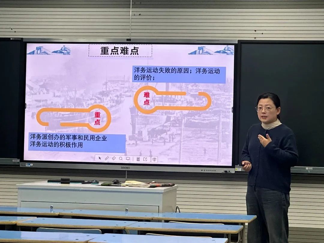 王捷頻老師以“洋務(wù)運動和邊疆危機”為題進行說課。王老師在深入分析課標(biāo)、教材和學(xué)情的基礎(chǔ)上,從教學(xué)目標(biāo)、教學(xué)重難點、教學(xué)方法、教學(xué)過程等方面闡述了教學(xué)思路,通過設(shè)計“內(nèi)憂外患,路在何方”“自強求富,艱難起步”“甲午海戰(zhàn),自救失敗”“一分為二,道阻且長”四個模塊探究洋務(wù)運動的背景、內(nèi)容、結(jié)果及影響,以“海防與塞防之爭”的課堂辯論引導(dǎo)學(xué)生認識清政府面臨的邊疆危機,并以唯物史觀的視角辯證看待晚清政府的近代化探索。本課設(shè)計貼合五中學(xué)生實際,有很強的教學(xué)操作性,展示了王老師扎實的教學(xué)基本功。