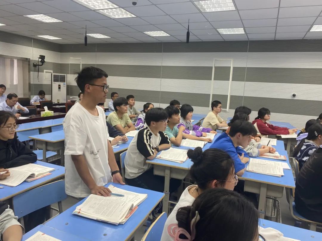 語文課堂最終指向言語實踐活動和語文思維的運用與發(fā)展。三位老師分別從古代文章明析,議論語言運用,詩歌意境分析三個角度豐富語文文字感知與賞析,內(nèi)容詳實,教學過程親切生動。任娟老師表示三位老師提供了一堂好課的標桿,陶老師教學生動,楊老師教學內(nèi)容豐富,高老師文學底蘊厚實,風格多樣,精彩紛呈;汪詩瀅老師也坦言作為青年教師從中受益匪淺,三位老師呈現(xiàn)了一種最自然最樸實的語文交流與互動。