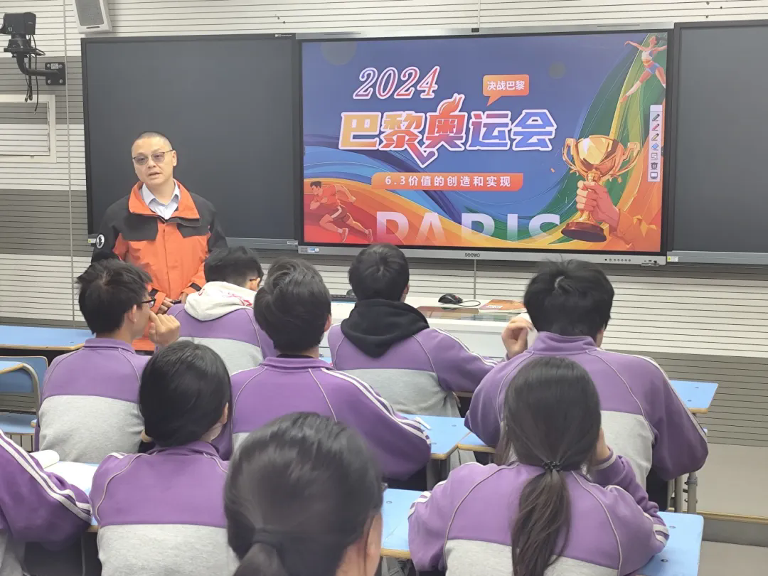 魏陳根老師以今年巴黎奧運會中中國元素為序,引出本節(jié)課主題——價值的創(chuàng)造和實現(xiàn)。以奧運會中國運動健兒的成就和個人價值如何實現(xiàn)作為明暗兩條線貫穿本節(jié)課始終,從實踐和理論兩方面說明個人價值的實現(xiàn)既需要統(tǒng)一個人與社會這一客觀條件,也需要自己努力拼搏這一主觀條件。同時講練結(jié)合,把學(xué)生所學(xué)和具體情景結(jié)合,學(xué)會分析處理問題。