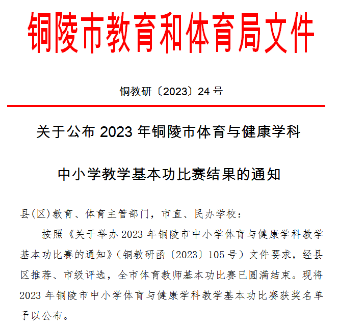 獅麓喜訊 | 銅陵五中教師在2023年銅陵市體育與健康學(xué)科 中小學(xué)教學(xué)基本功比賽中獲獎(jiǎng)
