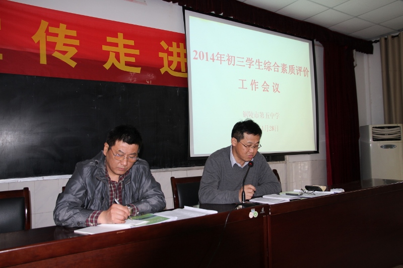 4月28日下午,我校召開了初中綜合素質(zhì)評價(jià)工作培訓(xùn)會(huì)。教務(wù)處呂建國主任解讀了學(xué)校綜合素質(zhì)評價(jià)實(shí)施方案,并對評價(jià)工作進(jìn)行了布置;分管校長孫曉東同志通報(bào)了市教育局有關(guān)綜合素質(zhì)評價(jià)的處理結(jié)果;學(xué)校負(fù)責(zé)人沐揚(yáng)同志要求大家高度重視綜合素質(zhì)評價(jià)工作,并做到公平、公開、準(zhǔn)確。初三教師、音體美教師、辦公會(huì)成員等參加了培訓(xùn)會(huì)。