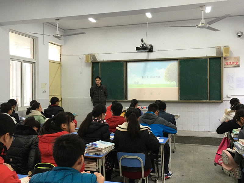 月1日上午第三節(jié)課,我校物理教研組舉行公開課及研討活動,所有組員全部到齊。鄭小軍老師在高101班進(jìn)行公開課教學(xué),講授的課題是“彈力”。鄭老師從“觀察橡皮筋的形變“的演示實驗開始導(dǎo)入本節(jié)課,通過大家周邊的事例來了解彈力。內(nèi)容豐富,重難點突出,課堂氣氛活躍。