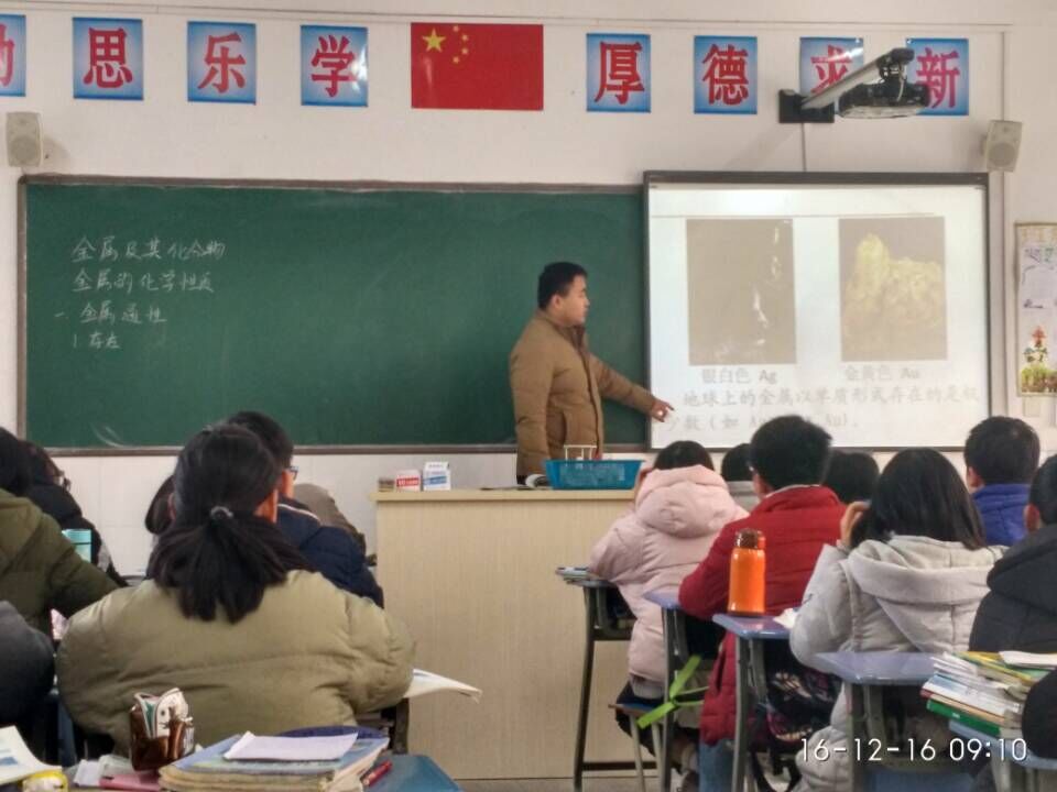 12月16日上午,化學組于捷老師,王紅霞老師分別在高102班,初301班進行公開課教學。