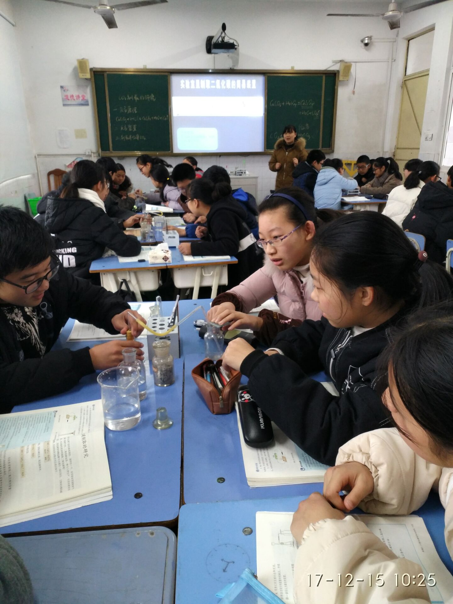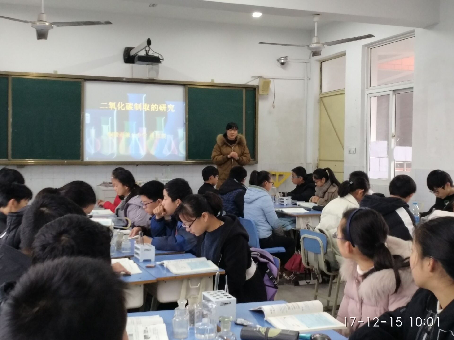12月15日,我校化學(xué)組王紅霞老師在初302班進(jìn)行公開(kāi)課教學(xué)。王老師的課題是二氧化碳制取的研究,王老師通過(guò)四個(gè)演示實(shí)驗(yàn)讓學(xué)生感受不同反應(yīng)物制取二氧化碳的現(xiàn)象,并通過(guò)討論分析得出二氧化碳制取的實(shí)驗(yàn)原理,再根據(jù)所學(xué)氧氣的實(shí)驗(yàn)室發(fā)生裝置來(lái)選擇二氧化碳的制取裝置,最終通過(guò)分組實(shí)驗(yàn)讓學(xué)生合作親身體驗(yàn)二氧化碳的制取以及檢驗(yàn)。整節(jié)課設(shè)計(jì)合理,環(huán)節(jié)流暢,充分體現(xiàn)新課程理念,極大的激發(fā)了學(xué)生的興趣,獲得較好的教學(xué)效果!