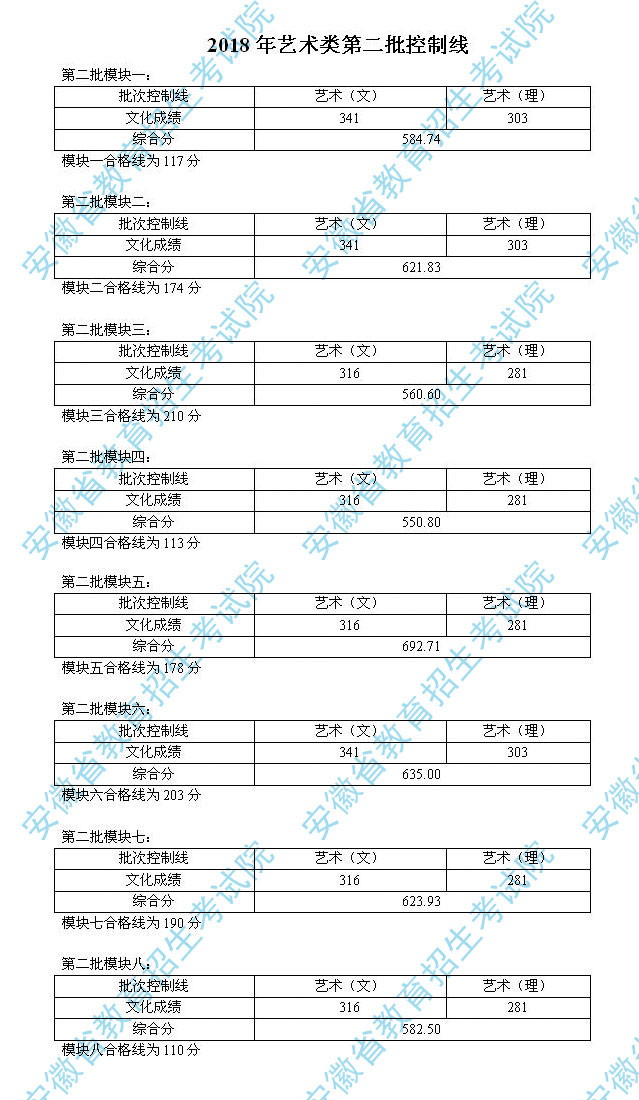 2018年藝術(shù)類本科第二批控制線(采用省統(tǒng)考成績)