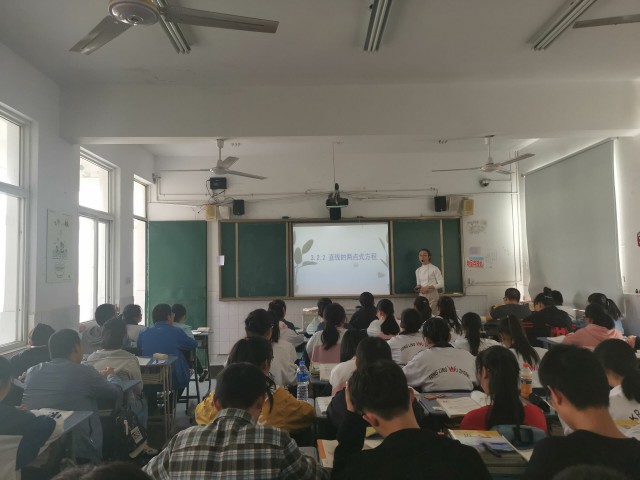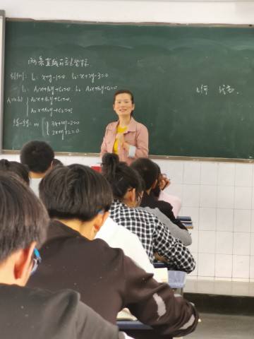 戴娟老師上的是《點到直線的距離》,由一個具體實例引出課題,如何去求點到直線的距離,有什么樣簡單的方法?教師引導(dǎo)學(xué)生一起思考方法再一起推導(dǎo)出點到直線的距離公式,最后利用例題來加深公式的理解與記憶。五中數(shù)學(xué)組教師參與了此次的聽課評課活動,得到了非常好的效果。