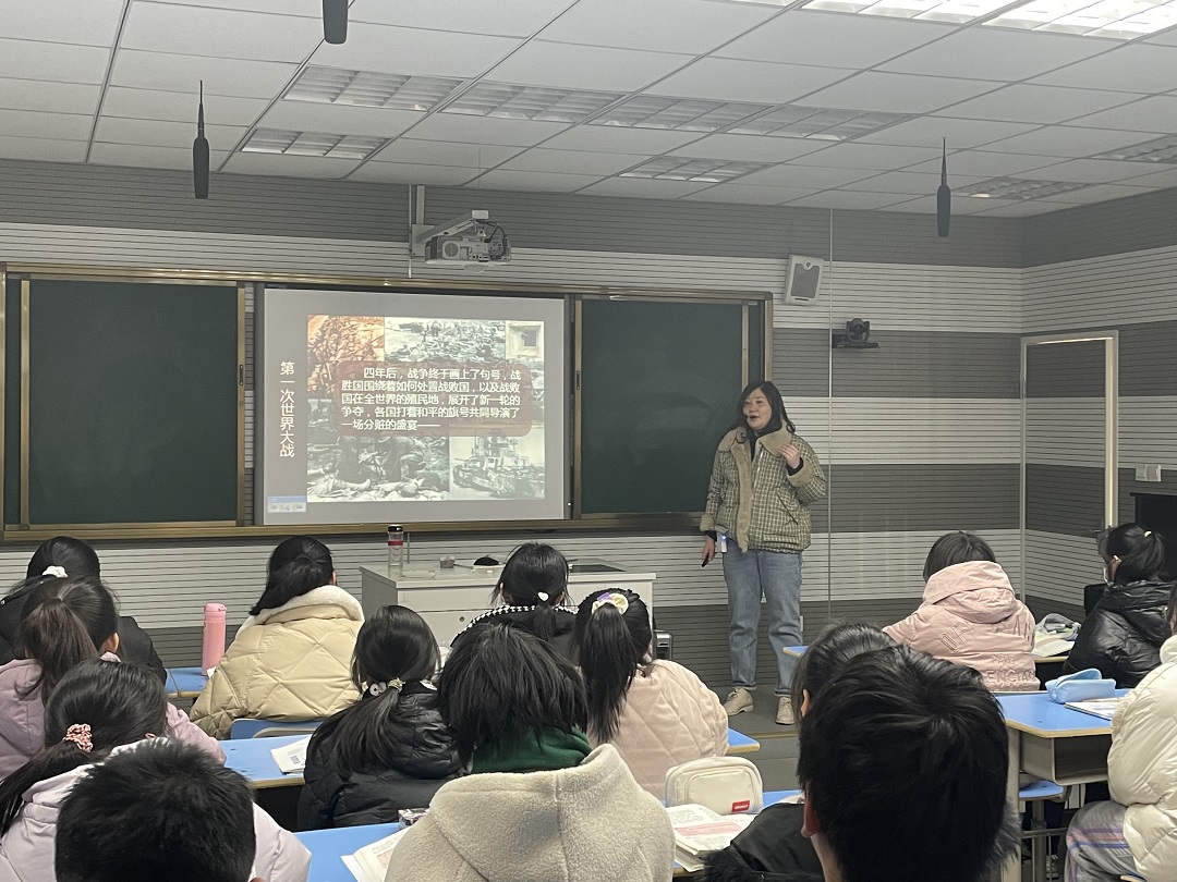鮑佳老師以“《凡爾賽條約》和《九國公約》”為課題,引用諸多史料對一戰(zhàn)后錯(cuò)綜復(fù)雜的國際關(guān)系進(jìn)行分析,帶領(lǐng)學(xué)生從不同視角領(lǐng)悟大國關(guān)系下歐洲與太平洋地區(qū)的發(fā)展走向。整節(jié)課十分流暢,體現(xiàn)鮑佳老師較高的教學(xué)素養(yǎng)。