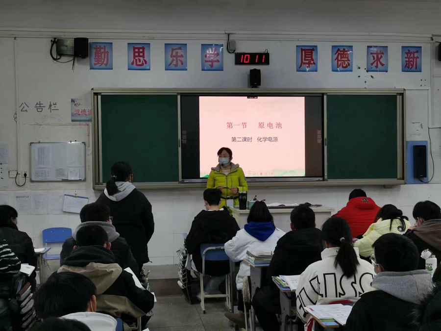 為了加強新教材教學(xué)研究和交流,我�;瘜W(xué)組王瑋老師于12月16日上午在高201班開展公開課教學(xué)活動。王老師的課題是選擇性必修一第四章第一節(jié)原電池第二課時《化學(xué)電源》。王老師以生活中的化學(xué)電源引入,分三種類型介紹了生活中常見的一次電池,二次電池以及燃料電池,著重分析電極反應(yīng)式的書寫,以及它們的優(yōu)缺點。通過學(xué)習(xí),學(xué)生認(rèn)識到化學(xué)電源的廣泛應(yīng)用,同時認(rèn)識到電池對環(huán)境的危害及處理方法。整個教學(xué)過程流暢,氣氛活躍,教學(xué)效果良好。