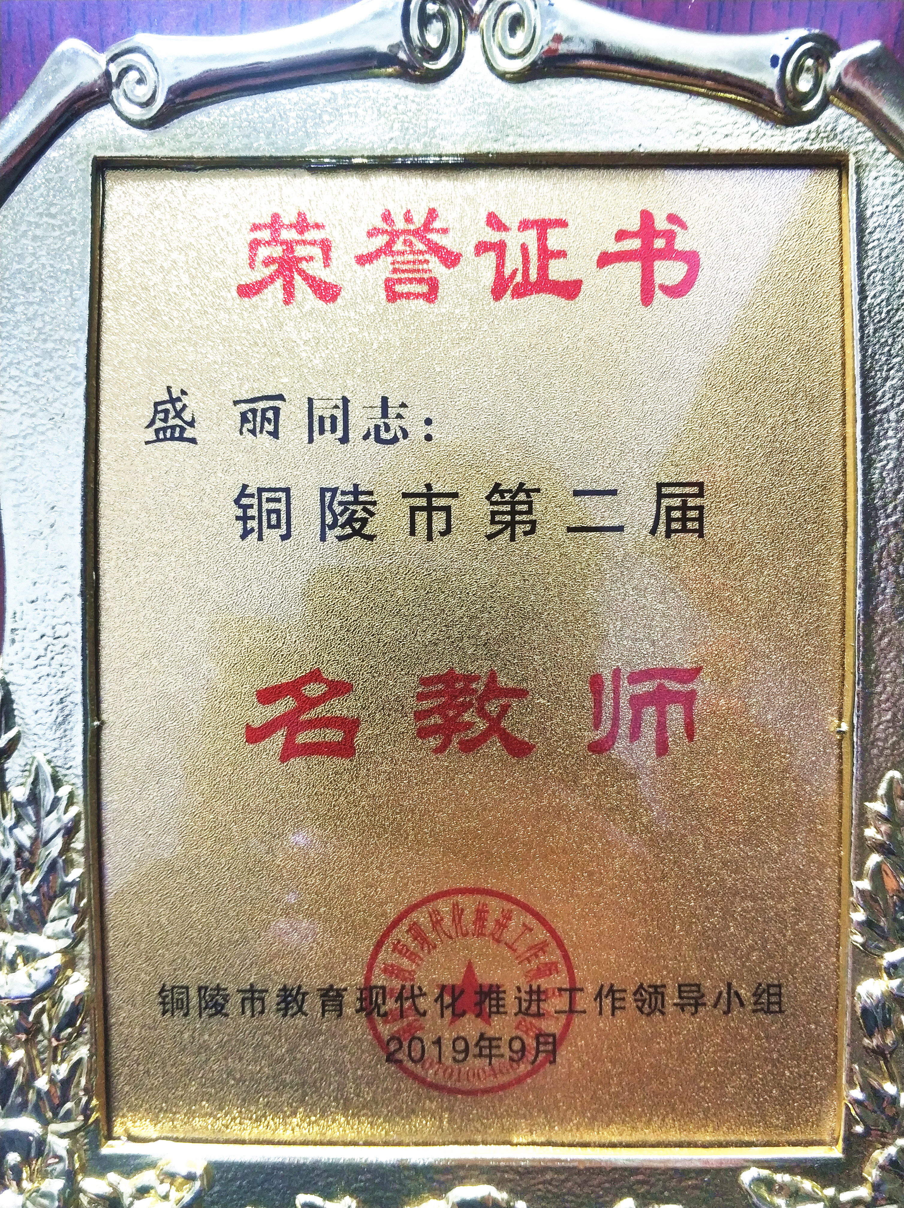 她長(zhǎng)期深耕語(yǔ)文教學(xué),成果豐碩,于2019年當(dāng)選為銅陵市第二屆“名教師”。