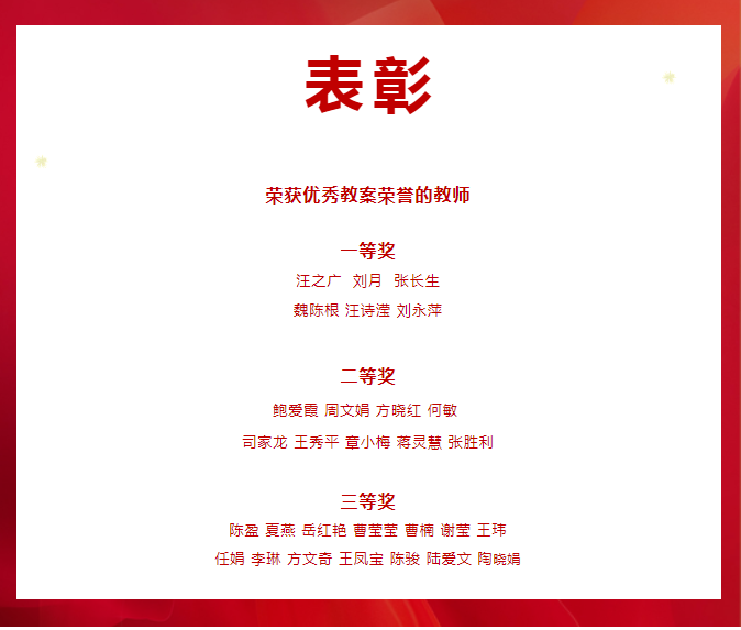 本著公平、公正的原則,每一位教師的教案都由三位評委分別打分,最后計算出平均分,根據(jù)得分情況,評出了本學期的優(yōu)秀教案,并按比例劃分出不同等次。
