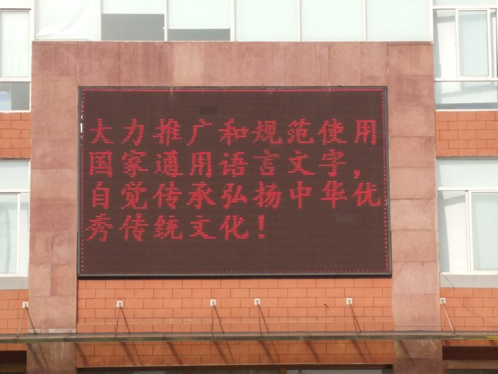 我校結合實際情況,通過校訊通信息、宣傳欄、顯示屏、校園網等渠道向全校師生宣傳推廣使用普通話,并通過國旗下講話、組織參加小講解員比賽、暑假讀書活動評比等形式,認真落實國家語言文字法律法規(guī)和方針政策以及省市相關文件精神,在全校師生中牢固樹立“說普通話、寫規(guī)范字、做文明人”意識,全校師生都努力為普通話的推廣、傳統(tǒng)文化的傳承做出自己的貢獻。