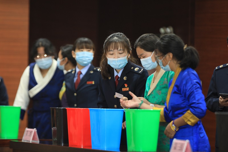 “果皮是什么垃圾?用過的面巾紙是什么垃圾?”“你知道垃圾分類桶有哪幾種顏色嗎……”3月8日婦女節(jié)到來之際,“稅務(wù)藍(lán)·高原紅 垃圾分類綠色行”主題活動(dòng)在國家稅務(wù)總局銅陵市稅務(wù)局舉辦,市五中組織西藏班學(xué)生參與了市稅務(wù)局“稅e家”巾幗志愿服務(wù)隊(duì)女稅務(wù)干部活動(dòng),通過開展垃圾分類趣味比賽、包餃子的形式共度這個(gè)溫馨的節(jié)日。