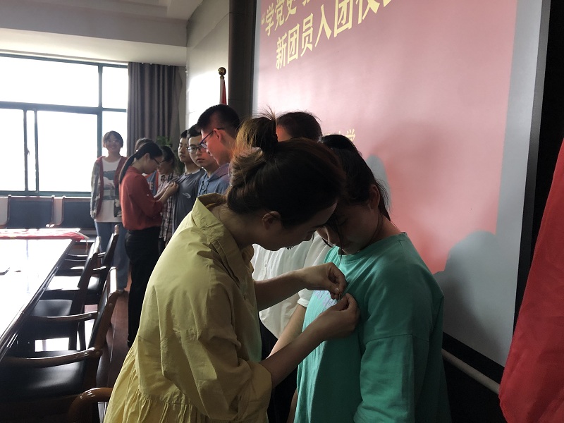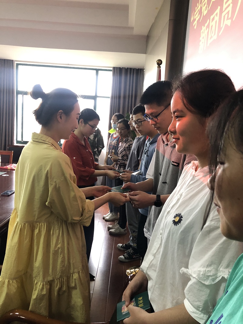 儀式活動在《光榮啊,中國共青團(tuán)》團(tuán)歌歌聲中拉開序幕。新團(tuán)員面對團(tuán)旗,舉起右手,緊握拳頭,莊嚴(yán)宣誓。鏗鏘有力的誓言傳達(dá)出新團(tuán)員們無比喜悅和激動之情。優(yōu)秀團(tuán)員易婷老師和胡帆老師為新團(tuán)員頒發(fā)了團(tuán)員證和團(tuán)徽。最后,校團(tuán)委副書記書記江嘉琪老師對入團(tuán)的同學(xué)表示祝賀,并對他們提出要求,希望他們牢記入團(tuán)誓詞,不忘初心,切實履行團(tuán)員權(quán)利和義務(wù),時刻以團(tuán)員標(biāo)準(zhǔn)嚴(yán)格要求自己,堅定學(xué)黨史、強(qiáng)信念、跟黨走的理想信念,努力成為一名優(yōu)秀的共青團(tuán)員。在活潑動感的團(tuán)歌聲中,本次活動圓滿結(jié)束。