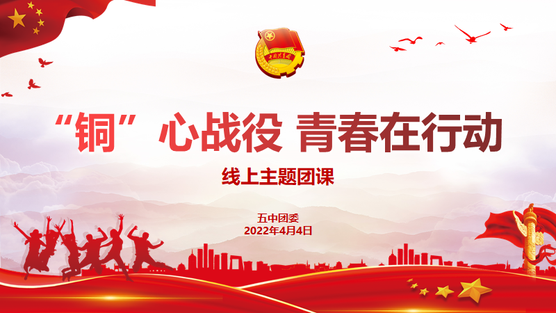 祖國呼喚青年擔(dān)當(dāng),時代賦予青年重任。青年勇于擔(dān)當(dāng)是五四運動留給我們寶貴的精神財富,更是新時代中國特色社會主義對青年一代的重托和要求。市五中積極落實疫情防控要求,創(chuàng)新形式,于4月4日下午舉行了線上主題團(tuán)隊課——“銅”心戰(zhàn)疫,青春在行動。
