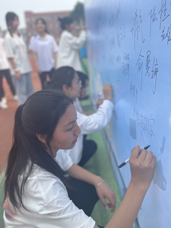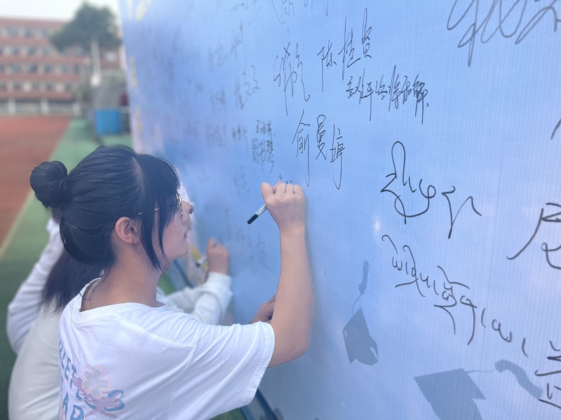 儀式結(jié)束后,全體高三年級師生們,大家互相擊掌致意和鼓勵,來到心愿墻處簽名并合影留念。