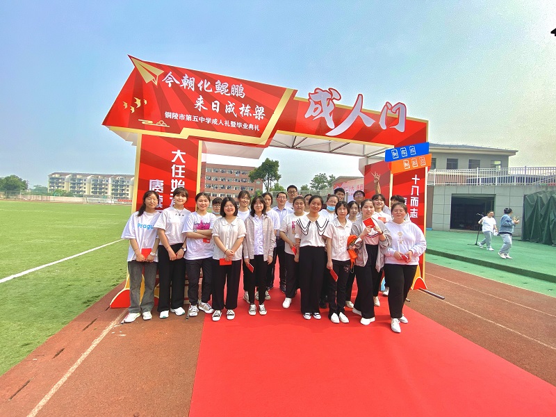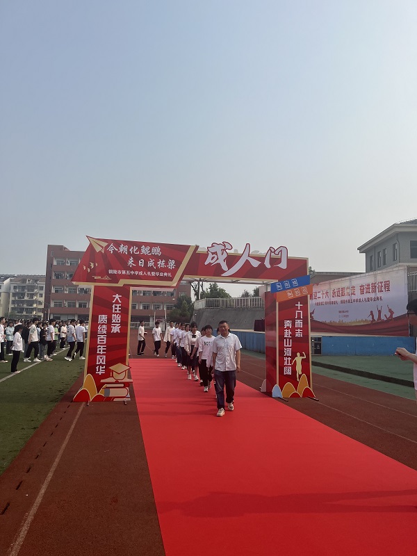 隨后,迎來了隆重的成人禮過成人門儀式,在班主任的帶領(lǐng)下,學(xué)生們緩緩走過成人門紅地毯。
