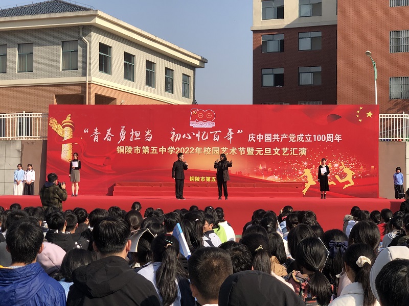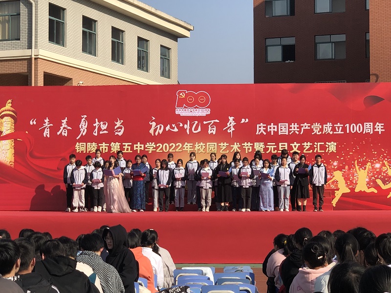 頌歌獻黨憶初心,青春報國擔使命。12月22日,銅陵市第五中學舉行了以“青春勇?lián)敗〕跣膽洶倌?rdquo;為主題的建黨一百周年校園藝術節(jié)暨元旦文藝匯演。