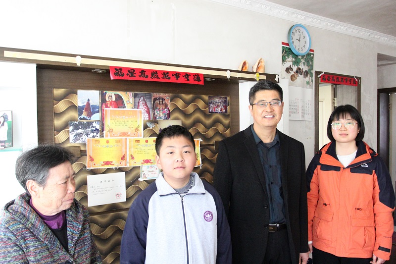 儀式結束后,在班主任劉月老師和吳正老師陪同下,分別慰問了初102班劉嘉樂同學和初201班常國坤同學的家庭。本次家訪活動給困難家庭送去溫暖的同時,更鼓舞了學生勵志成才,學會感恩。受助家庭對五中領導和教師的關愛,表達了真誠的感謝。
