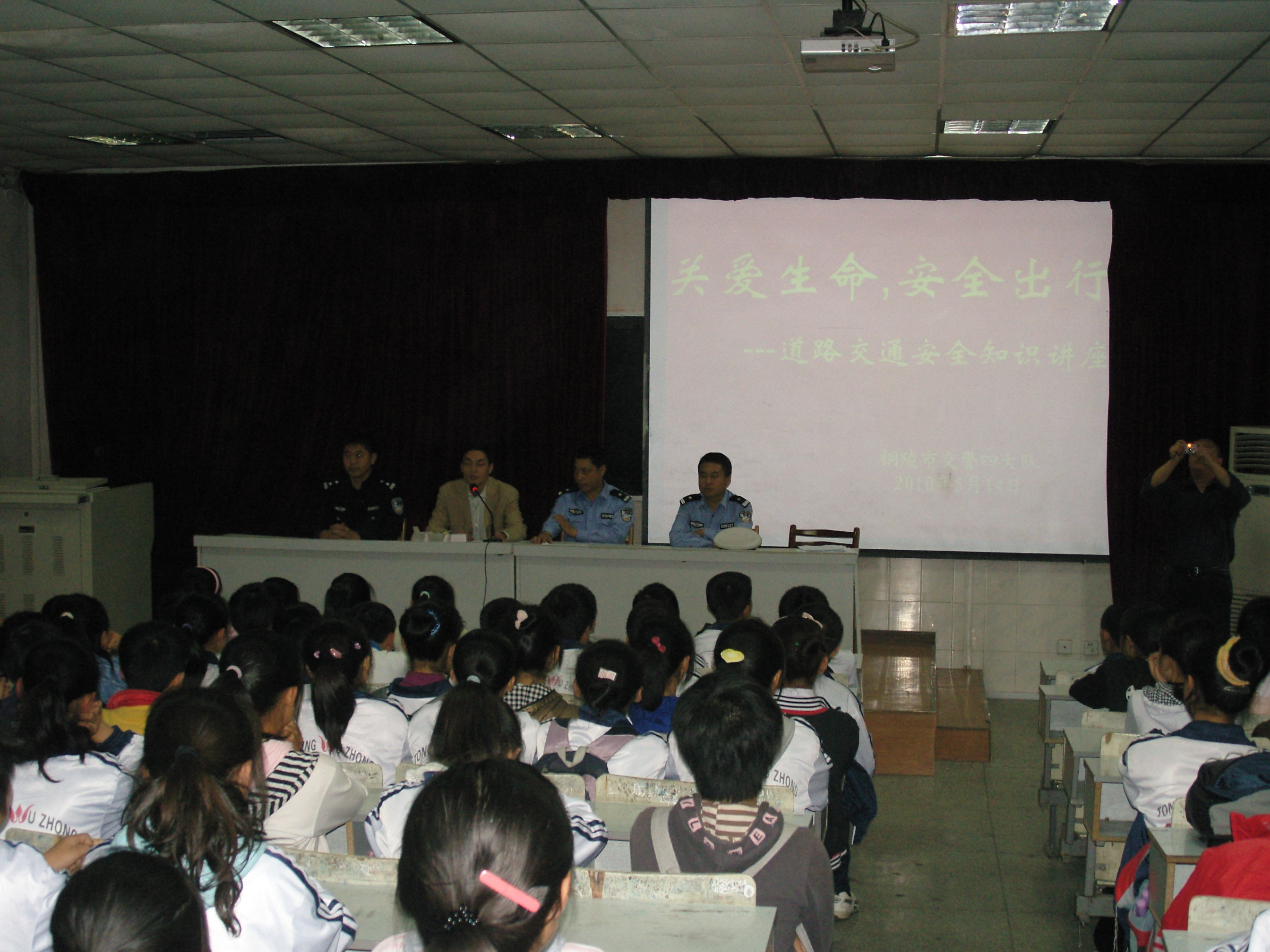 5月14日下午,我校聯(lián)合市交警四大隊在學(xué)校階梯教室舉行了一場交通安全知識講座。交警四大隊干警結(jié)合相關(guān)案例就基本的交通安全常識、常見的交通安全標(biāo)識、道路行走安全、乘車安全、騎車安全等幾個方面為學(xué)生作了通俗易懂的講解并與學(xué)生互動。活動進(jìn)一步普及了交通安全知識,推進(jìn)了學(xué)校安保工作。