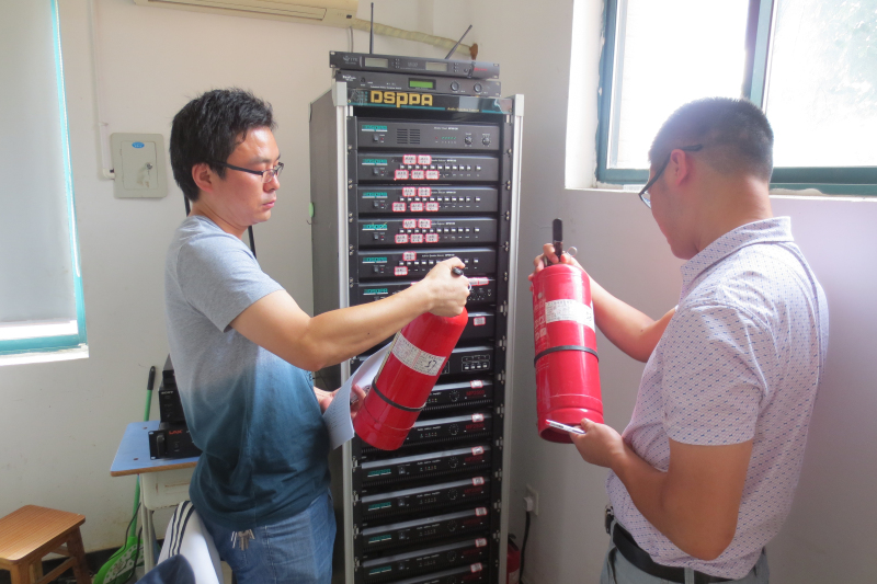 我校在假前檢查滅火器等消防器材和設(shè)施