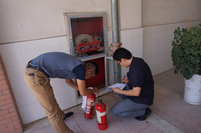 9月10日以來,政教處開展消防安全隱患排查活動,并對全校120多個滅火器進行全面“體檢”,確保校園公共財產和廣大師生的生命安全。此次檢查的內容包括滅火器筒體是否有銹蝕、變形現象;銘牌是否完整清晰;噴嘴是否有變形、開裂、損傷;噴射軟管是否暢通、是否有變形和損傷;滅火器壓力表的外表面是否變形、損傷,指針是否指在綠區(qū);滅火器壓把、閥體等金屬件是否有嚴重損傷、變形、銹蝕等影響使用的缺陷;滅火器的橡膠、塑料件是否變形、變色、老化或斷裂;政教處還對滅火器進行了灰塵的清理�! �