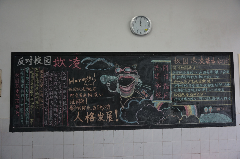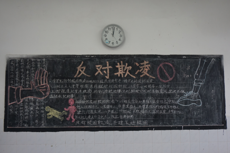 為進(jìn)一步凈化校園環(huán)境,杜絕校園欺凌行為,營(yíng)造和諧育人氛圍,促進(jìn)學(xué)生身心健康發(fā)展,我校各班級(jí)利用主題班會(huì)、黑板報(bào)等形式,開展道德講堂活動(dòng)--杜絕校園欺凌、共建和諧校園。