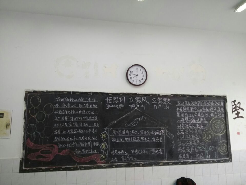 為全面貫徹落實(shí)黨的十九大精神,深入學(xué)習(xí)貫徹習(xí)近平總書記系列重要講話特別是關(guān)于家庭、家教、家風(fēng)的重要論述,進(jìn)一步推動(dòng)社會(huì)主義核心價(jià)值觀落實(shí)落細(xì)、入腦入心,根據(jù)銅陵市《關(guān)于實(shí)施“傳家訓(xùn)、育家風(fēng)、立家教,踐行社會(huì)主義核心價(jià)值觀”教育工程的方案》精神和要求,自開學(xué)以來,我校利用主題黑板報(bào)、班隊(duì)會(huì)、家長(zhǎng)學(xué)校、國(guó)旗下講話等形式開展傳育立行主題教育活動(dòng)。