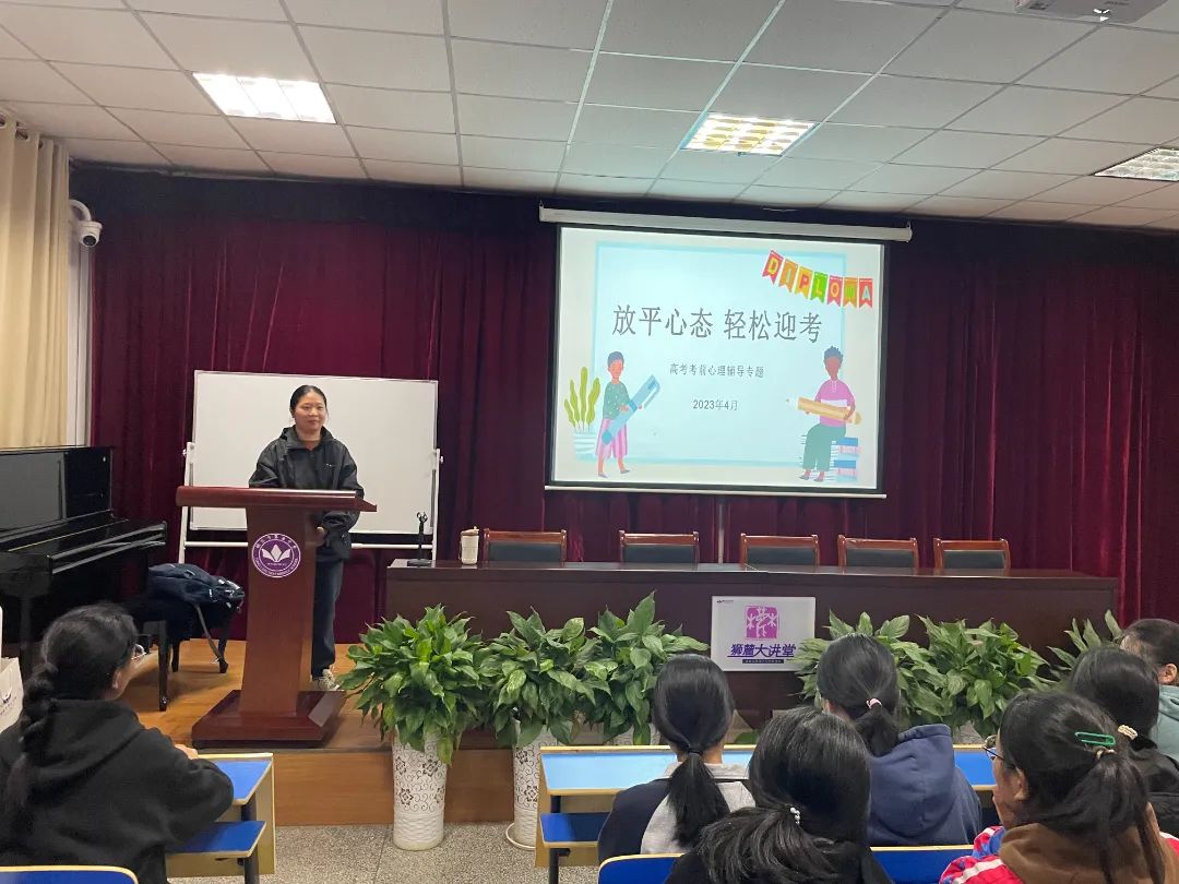 三年苦讀豐羽翼,今朝博擊翱長空。在2023年高考來臨之際,為幫助高三學子們更好地調(diào)節(jié)心理狀態(tài),緩解考試焦慮,引導同學們用科學的方法和積極的心態(tài)迎接考試,4月24日下午,銅陵五中在多功能室舉行了針對高三學生的考前心理輔導專題活動。此次活動由校教科室組織開展,學校專職心理健康教師姜雪主講。