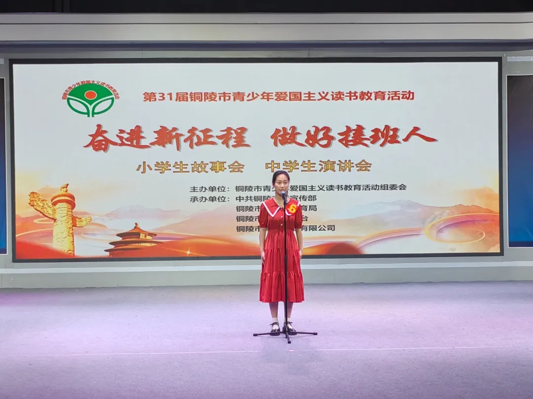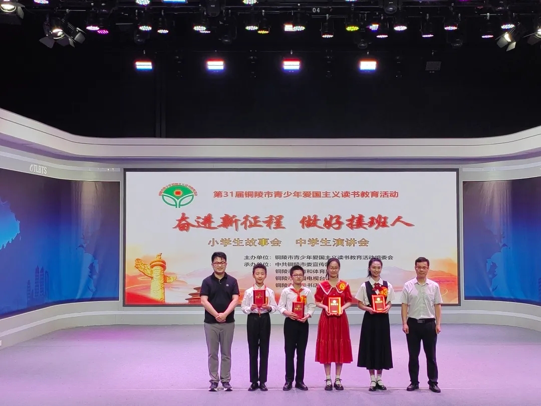 萬物豐茂,捷報頻傳風正勁;繁花似錦,碩果累累凱歌還。6月19日下午,銅陵市“奮進新征程 做好接班人”第31屆青少年愛國主義讀書教育主題活動“小學生故事會暨中學生演講會”在銅陵電視臺演播大廳舉行。來自全市各個學校的12名小學生選手和18名中學生選手依次登場。最終我校高201班靳玉佳妍同學憑借精彩的發(fā)揮,贏得了評委一致好評,最終獲得銅陵市中學生演講會總分第一名,市級一等獎的好成績,并且靳玉佳妍同學即將代表銅陵市參加愛國主義讀書教育活動安徽省賽區(qū)比賽。這也是我校在最近四屆的愛國主義讀書教育活動當中,第三次獲得銅陵市賽一等獎第一名。
