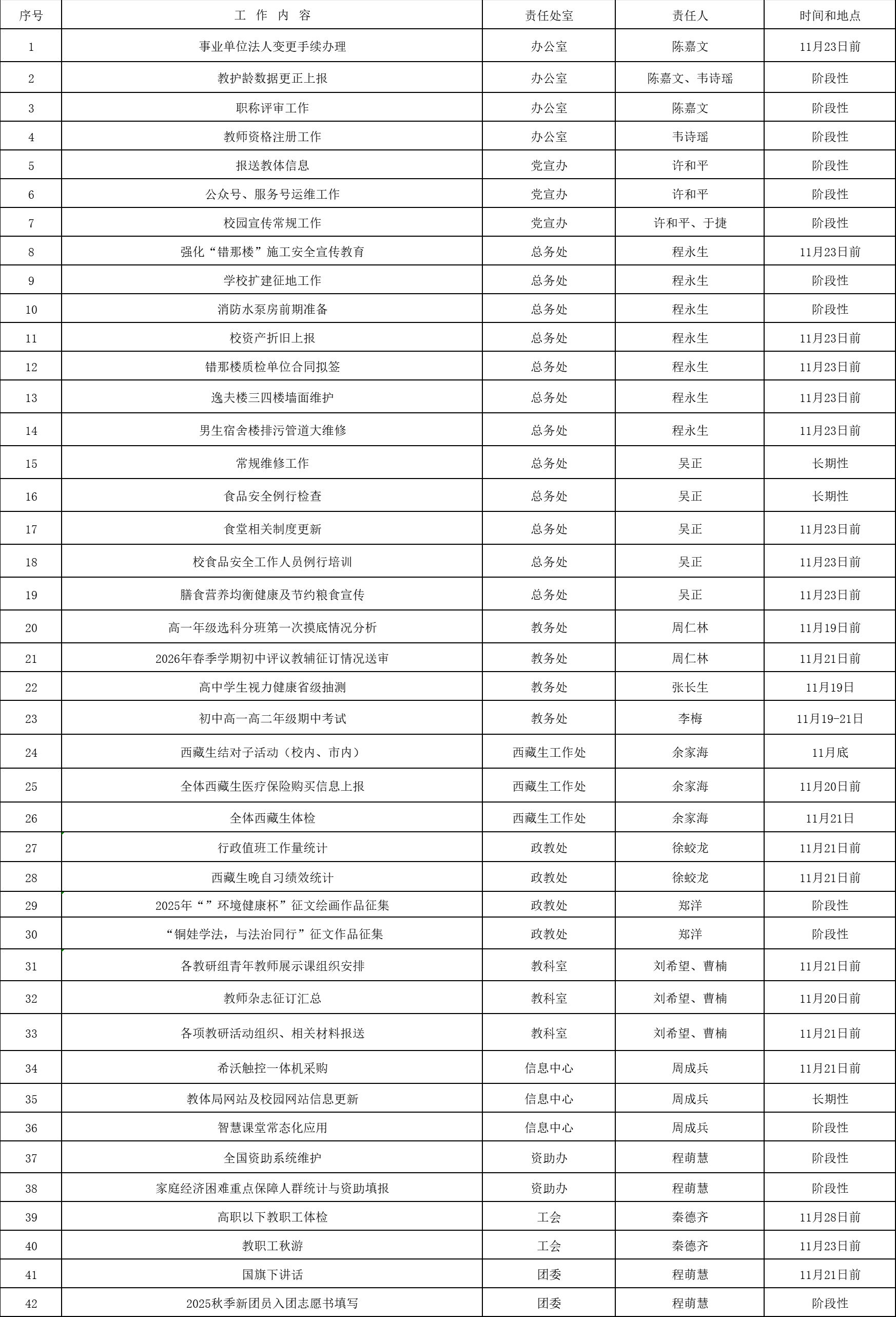 市五中2025-2026學年度第一學期第12周工作安排匯總表