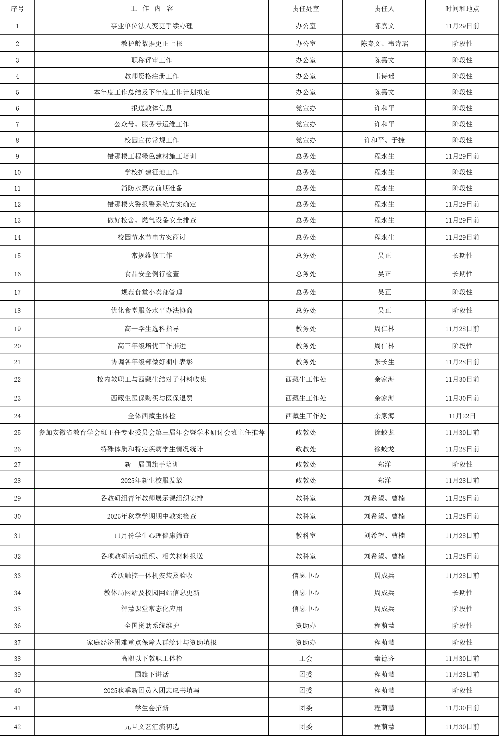 市五中2025-2026學年度第一學期第12周工作安排匯總表