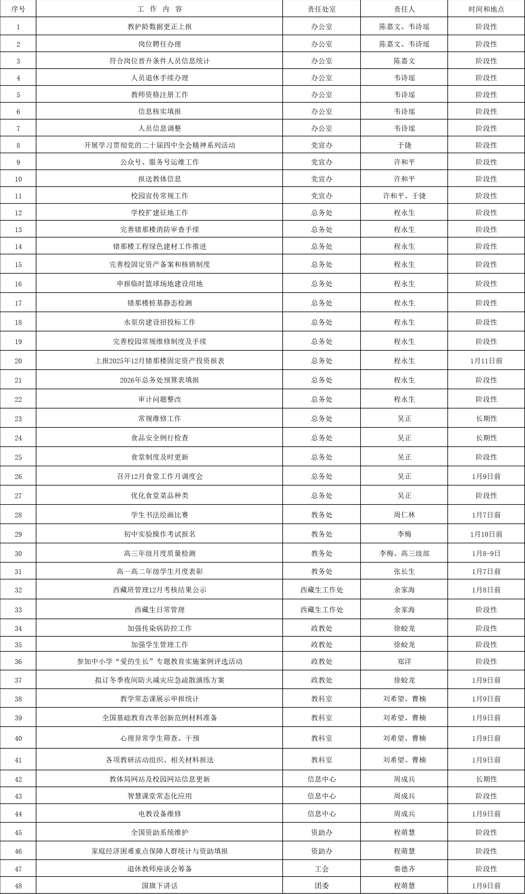 市五中2025-2026學年度第一學期第19周工作安排匯總表