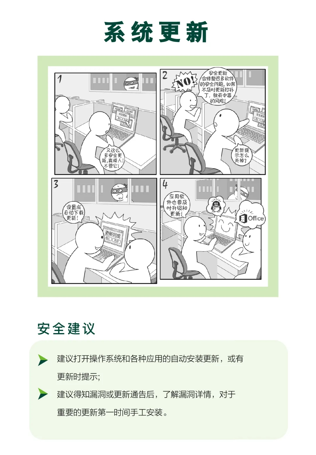 9月14日至20日,2020年國(guó)家網(wǎng)絡(luò)安全宣傳周在全國(guó)范圍內(nèi)統(tǒng)一開(kāi)展,本次安全宣傳周以“網(wǎng)絡(luò)安全為人民,網(wǎng)絡(luò)安全靠人民”為主題,我校將結(jié)合實(shí)際,開(kāi)展各項(xiàng)主題教育活動(dòng)。針對(duì)網(wǎng)絡(luò)用戶的日常上網(wǎng)習(xí)慣、密碼保護(hù)、數(shù)據(jù)安全、wifi使用安全、工作資料保護(hù)、家用設(shè)備安全等方面,轉(zhuǎn)載以下信息安全意識(shí)漫談畫(huà)冊(cè)給予指導(dǎo)。