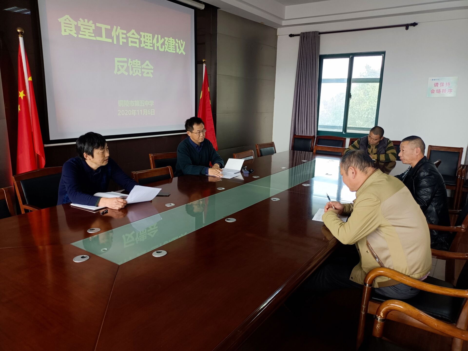 2020年11月6日下午2點(diǎn),學(xué)校召開了關(guān)于學(xué)生都對(duì)食堂餐飲意見、建議的反饋會(huì)議。會(huì)議由汪校長(zhǎng)主持,主要對(duì)學(xué)生提出的食堂菜品單一,飯餐分量,增加牛奶、豆?jié){,飯菜浪費(fèi)等情況向食堂經(jīng)營(yíng)方進(jìn)行了通報(bào),要求其在一定時(shí)間內(nèi)進(jìn)行整改。同時(shí),沐校長(zhǎng)對(duì)食材采購(gòu)、成本核算、早餐的制作等方面提出了具體要求。
