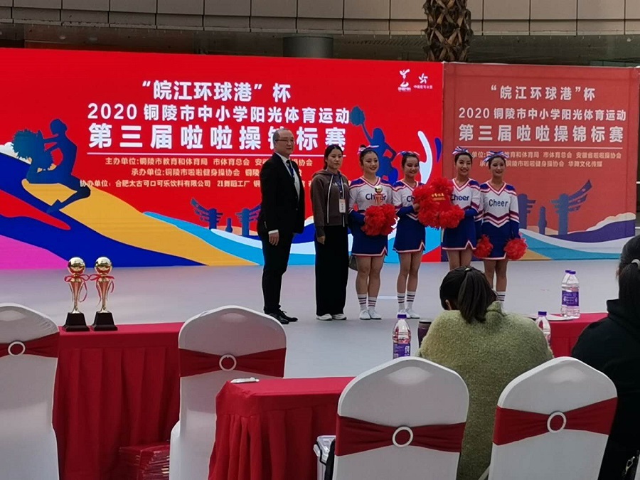 2020年11月8號(hào),我校啦啦操社團(tuán)中六名成員經(jīng)過一個(gè)月的辛苦訓(xùn)練,在銅陵市第三屆啦啦操錦標(biāo)賽中獲得一等獎(jiǎng)。