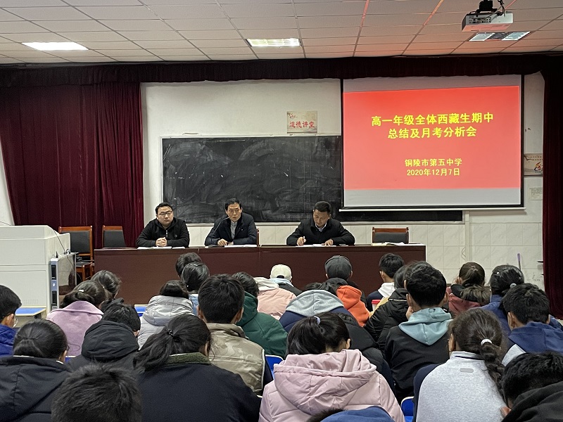 12月7日晚6點(diǎn),高一西藏生在階梯教室召開12月月考分析總結(jié)會(huì)。高一年級(jí)部副部長(zhǎng)、年級(jí)組組長(zhǎng)徐蛟龍主持會(huì)議,校黨支部副書記、高一年級(jí)部部長(zhǎng)楊克貴、教務(wù)處主任周仁林、高一山南班班主任胡帆及全體高一西藏生參加了此次會(huì)議。